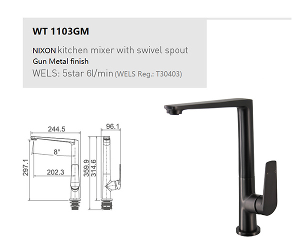 NIXON-II Kitchen Sink Mixer, WELS Rating:5 star 6L/min, WELS: Reg. No: T34897