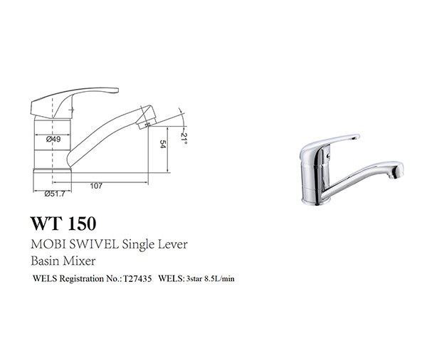 MOBI Swivel Basin Mixer,WELS Reg. No: T27435