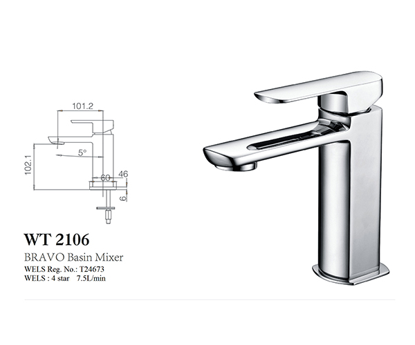 BRAVO Basin Mixer, WELS Rating:4 star 7.5L/min, WELS Reg. No: T24673