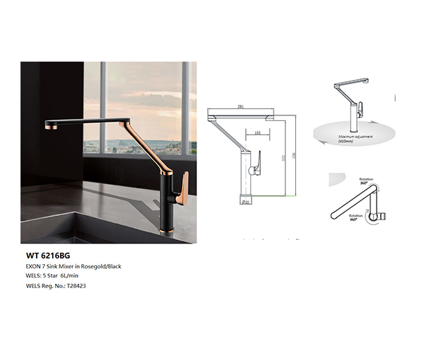 EXON 7 Sink Mixer in Rose Gold/Black