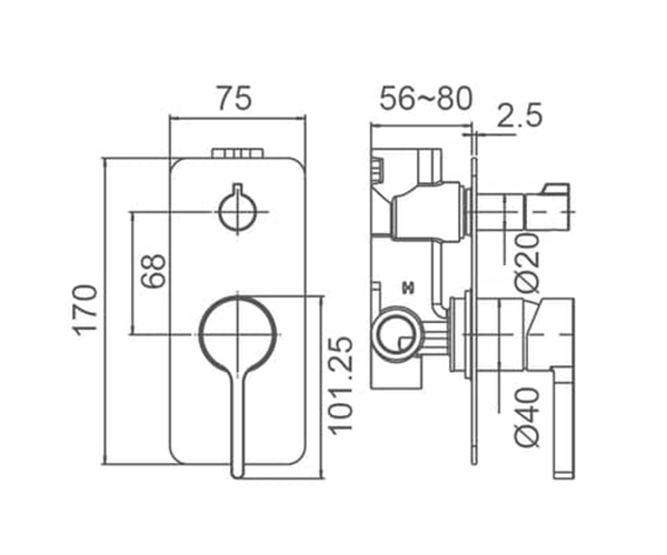 KENZO Shower Mixer with Diverter in Brushed Nickel