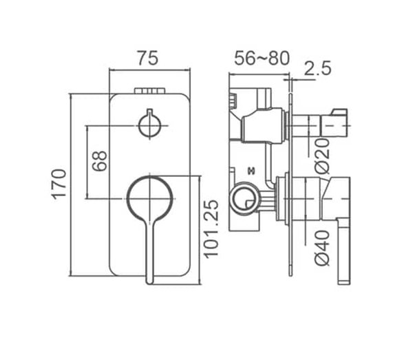 KENZO Shower Mixer With Diverter Matte Black