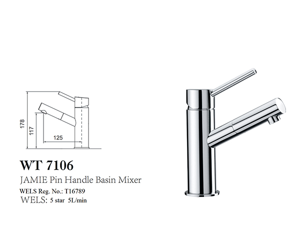 JAMIE Pin Handle Basin Mixer, WELS Reg. No: T16789