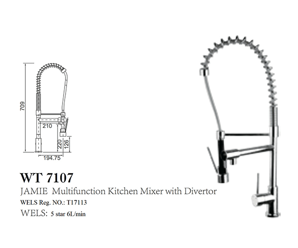 JAMIE Pin Handle Multifunction Kitchen Mixer with Diverter, WELS Reg. No: T17113