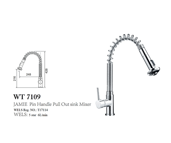 JAMIE Pin Handle Pull Out Kitchen Mixer, WELS Reg. No: T17114