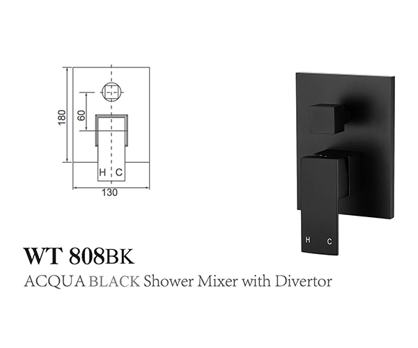 ACQUA BLACK Shower Mixer with Divertor Matte Black finish